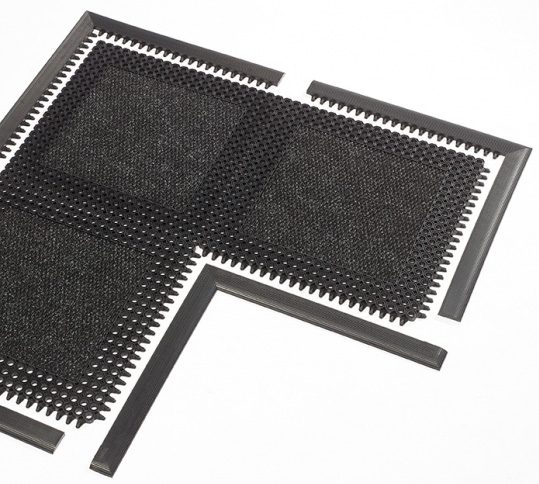 Ringmattene leveres i fliser i størrelse 50x50 cm. Kombiner ulike moduler, skrapemoduler eller tekstilinnlegg for absorberende effekt. Hvis en flis eller innlegg skulle bli skadet bytter du enkelt ut kun den skadde flisen, du trenger ikke å bytte hele mattesonen.